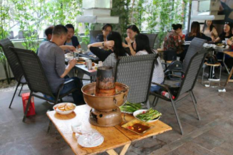 中午12點(diǎn),我們到達(dá)“又一絕”農(nóng)家莊吃燒烤和銅鍋,大家大口吃肉,大碗喝酒,品嘗著胡老師珍藏了三年的自釀葡萄美酒。邊吃邊談?wù)撝ぷ骱蜕睿魇慵阂姟?/span>