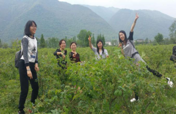 飯飽酒足,我們啟程前往綿竹土門玫瑰谷去觀看中國最大的玫瑰谷基地。漫步于玫瑰花田間,聽宋老師給我們講著玫瑰基地的來源,賞各種玫瑰含苞待放的姿態(tài),品現(xiàn)做現(xiàn)賣的玫瑰鮮花餅。