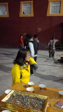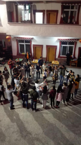 晚飯后回房間休憩修整,8點(diǎn)30晚上的活動(dòng)便開(kāi)始了——烤全羊和跳鍋莊!跟著熱情的“瑟浪”和“以沫”一陣的群魔亂舞,盡管大家的舞姿都迷之奇特,但是在當(dāng)下的氣氛下依然覺(jué)得很美好,每個(gè)人臉上洋溢的都是滿(mǎn)滿(mǎn)的開(kāi)心。一陣活絡(luò)后大家圍坐下來(lái)開(kāi)始準(zhǔn)備吃!烤!全!羊?。∵^(guò)程中不斷有游客上去唱著自己拿手的歌曲為大家助興,其中包括我們的歌神謙謙,一開(kāi)口就驚艷四座,歡呼聲鼓掌聲不斷。熱熱鬧鬧的篝火晚會(huì)以及一天的行程在導(dǎo)游的歌聲中結(jié)束。