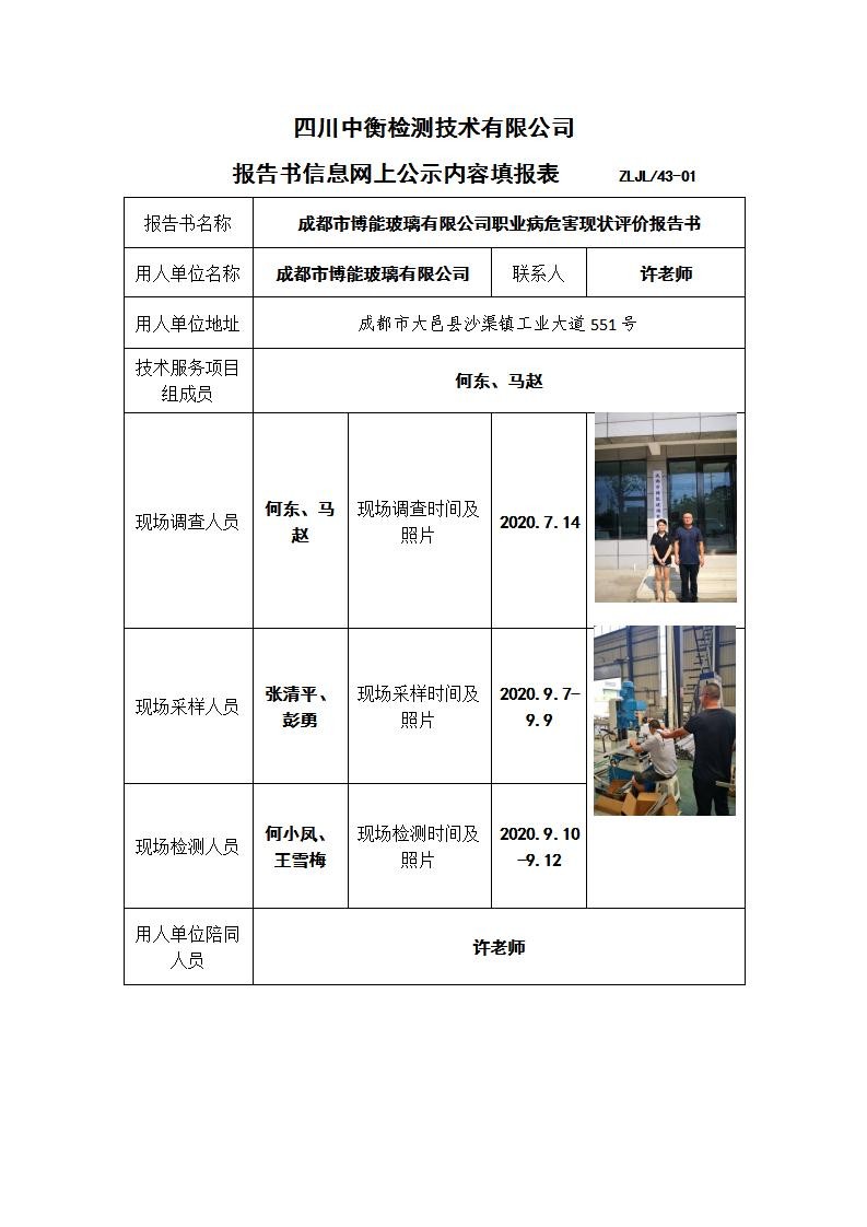 成都市博能玻璃有限公司職業(yè)病危害現(xiàn)狀評(píng)價(jià)報(bào)告書