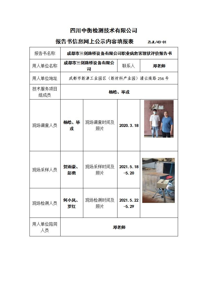 成都市三劍路橋設(shè)備有限公司職業(yè)病危害現(xiàn)狀評價(jià)報(bào)告書
