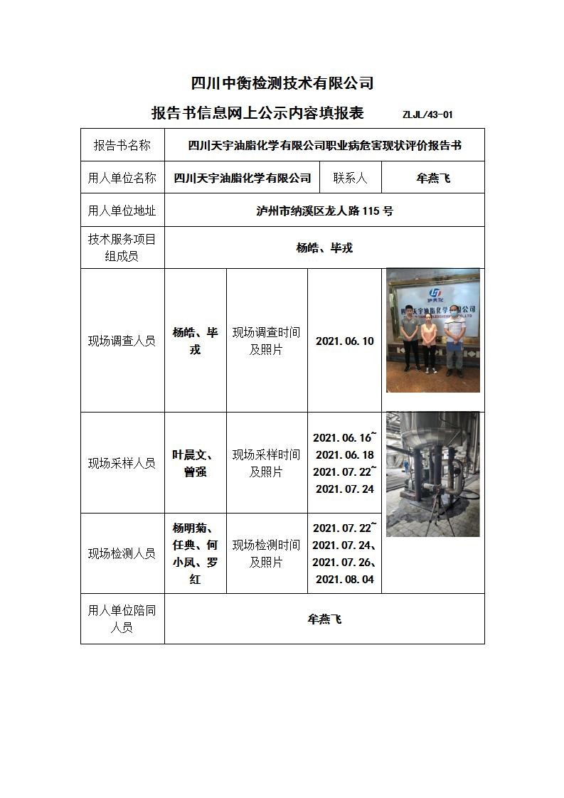 四川天宇油脂化學(xué)有限公司職業(yè)病危害現(xiàn)狀評價(jià)