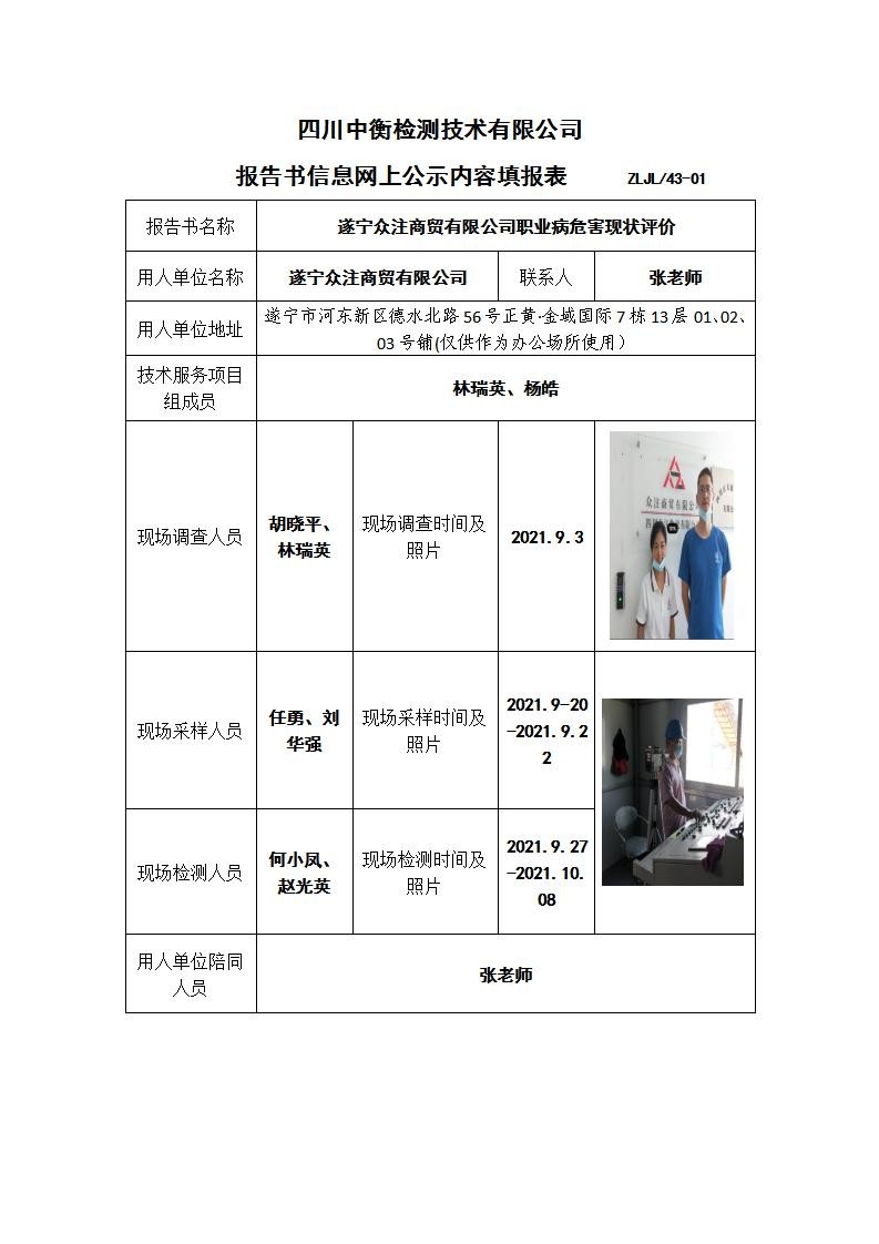 遂寧眾注商貿(mào)有限公司職業(yè)病危害現(xiàn)狀評價