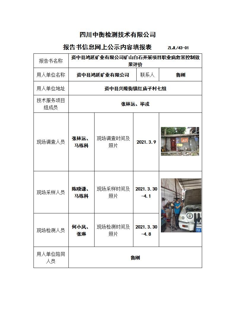 資中縣鴻延礦業(yè)有限公司礦山白石開采項目職業(yè)病危害控制效果評價