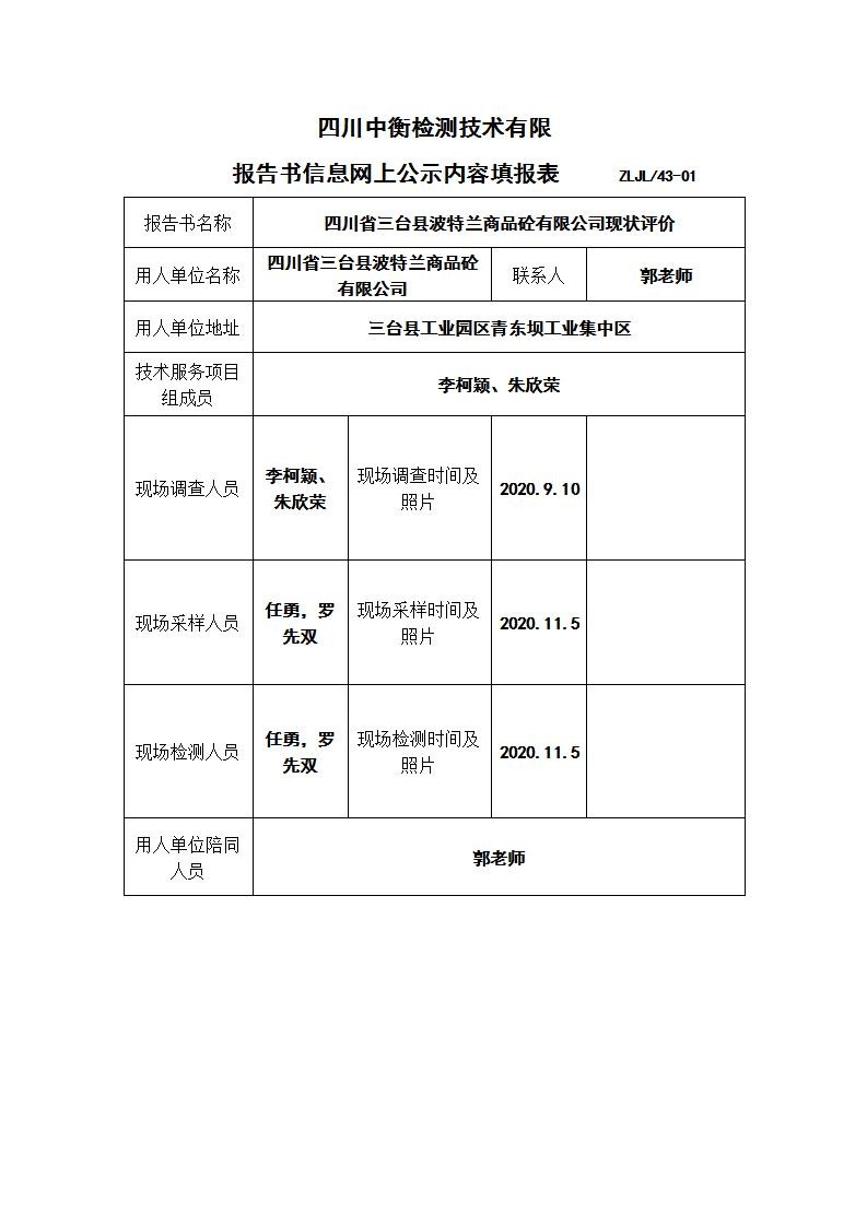 四川省三臺縣波特蘭商品砼有限公司現(xiàn)狀評價(jià)
