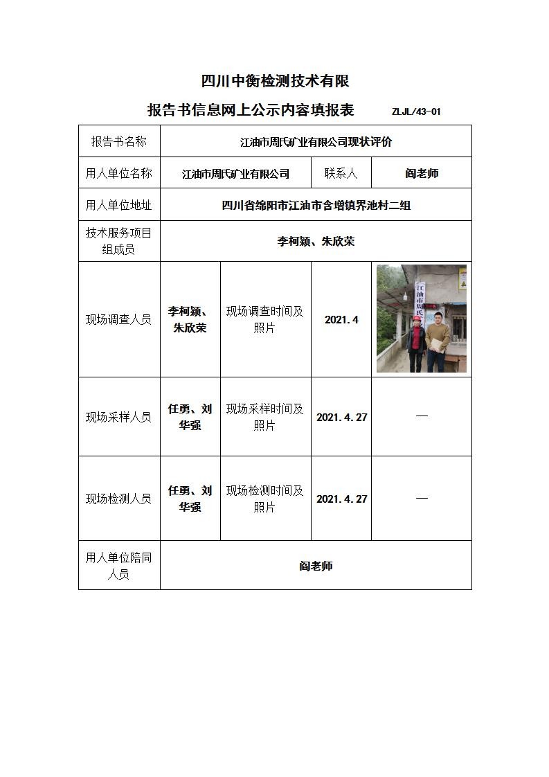 江油市周氏礦業(yè)有限公司現(xiàn)狀評價