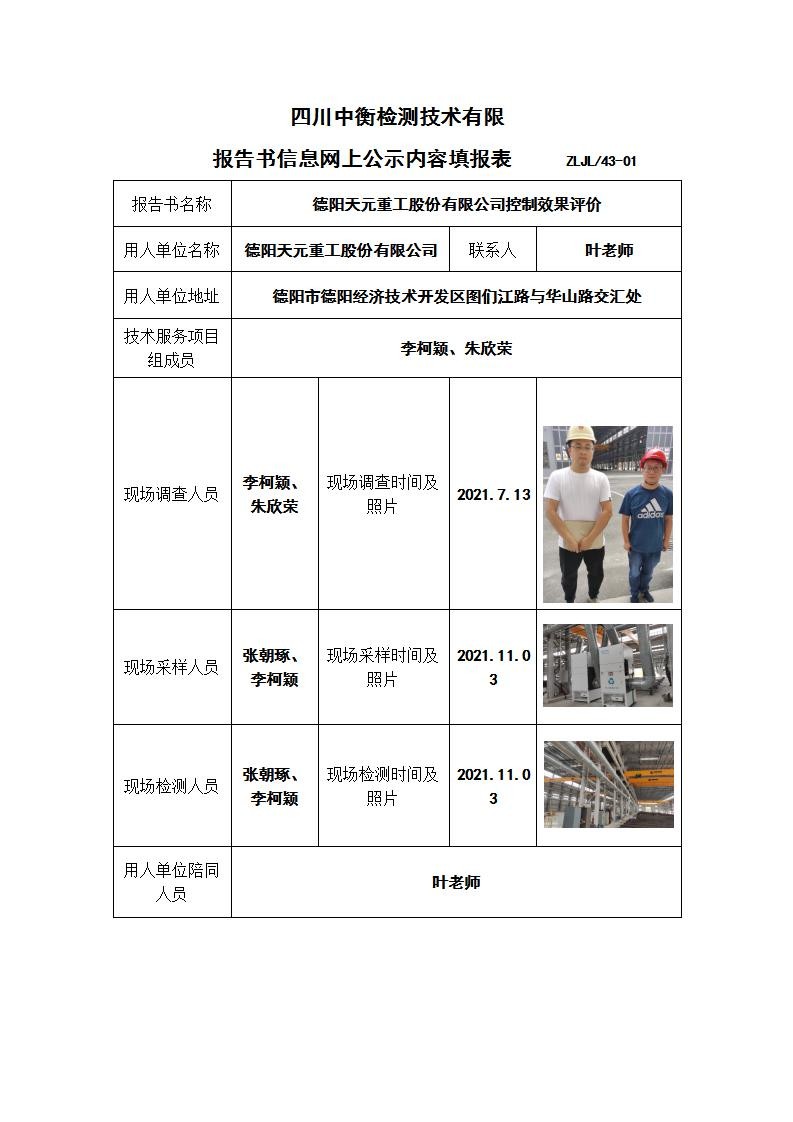 德陽天元重工股份有限公司控制效果評價