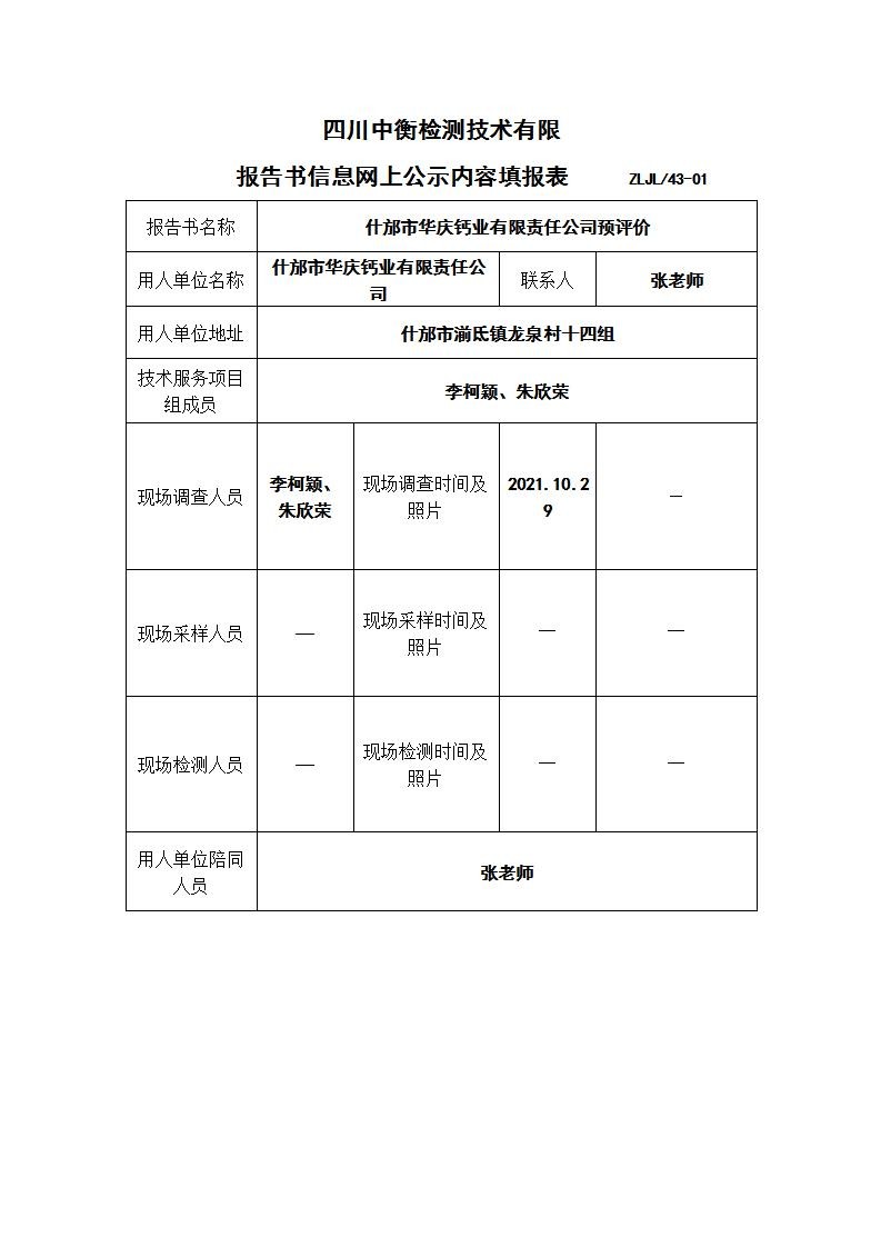 什邡市華慶鈣業(yè)有限責(zé)任公司預(yù)評(píng)價(jià)