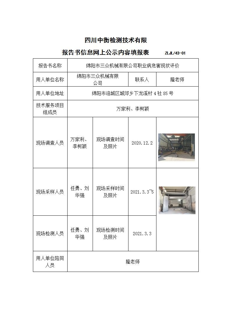 綿陽(yáng)市三眾機(jī)械有限公司職業(yè)病危害現(xiàn)狀評(píng)價(jià)