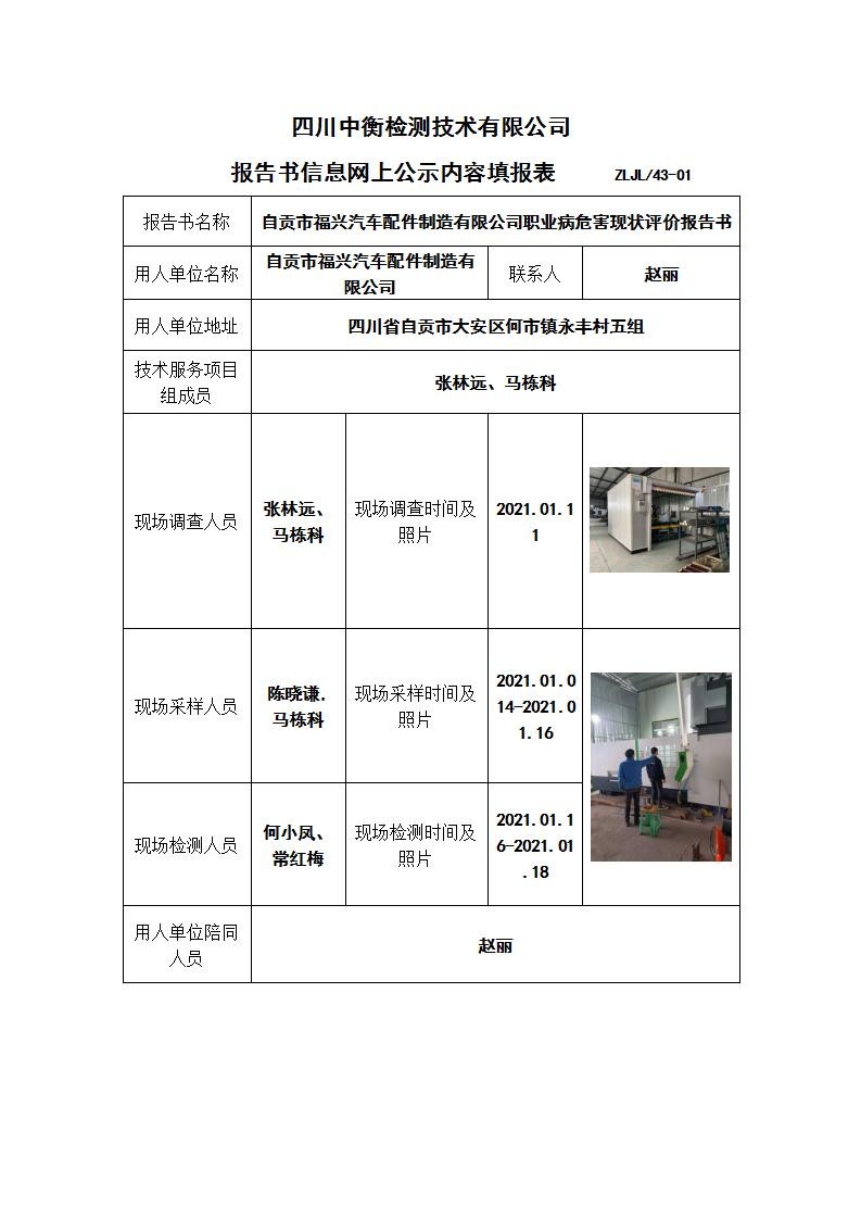 自貢市福興汽車配件制造有限公司職業(yè)病危害現(xiàn)狀評價(jià)