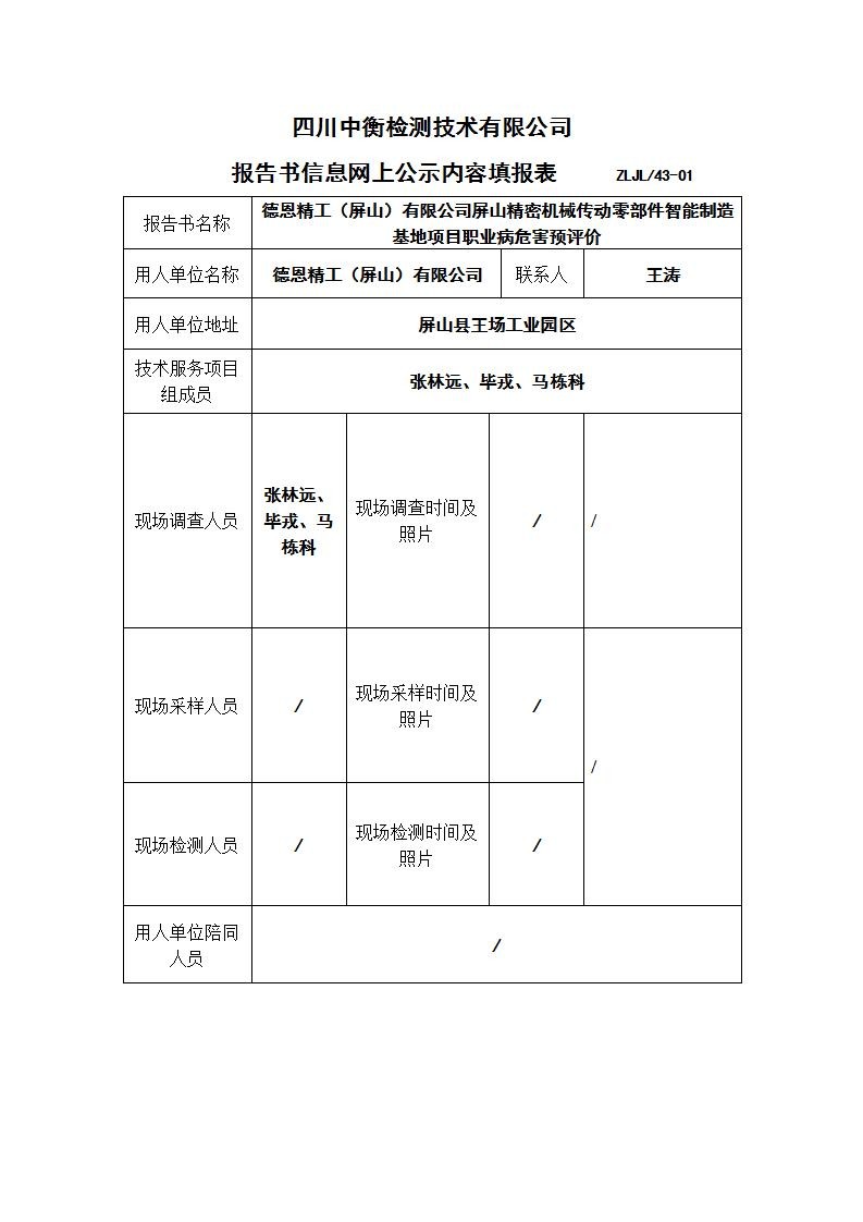 德恩精工(屏山)有限公司屏山精密機械傳動零部件智能制造基地項目職業(yè)病危害預(yù)評價