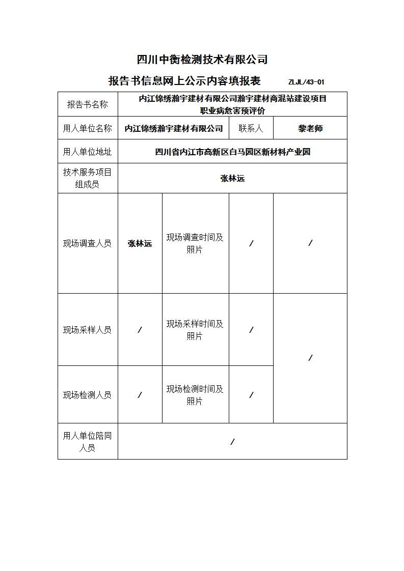 內(nèi)江錦繡瀚宇建材有限公司瀚宇建材商混站建設(shè)項(xiàng)目 職業(yè)病危害預(yù)評(píng)價(jià)