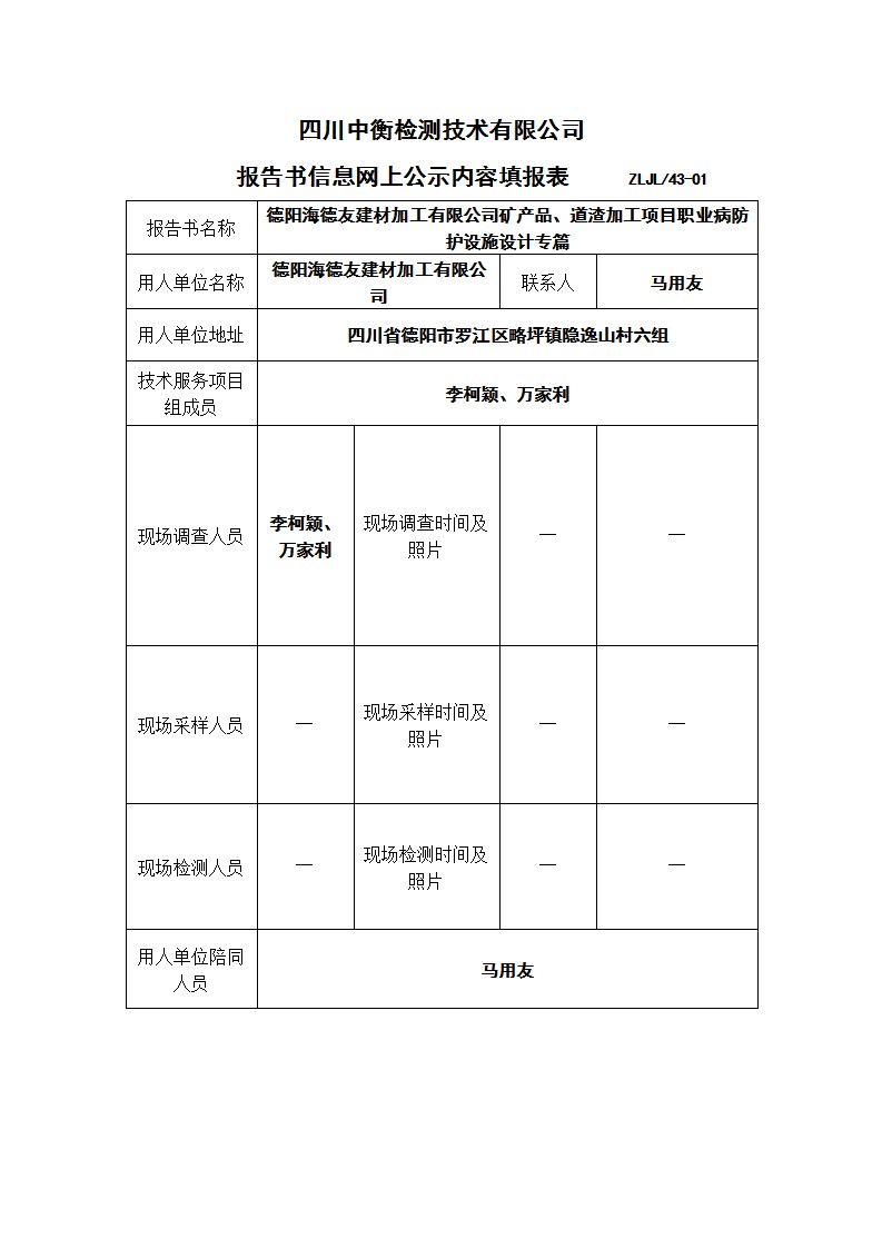 德陽海德友建材加工有限公司礦產(chǎn)品、道渣加工項(xiàng)目職業(yè)病防護(hù)設(shè)施設(shè)計專篇