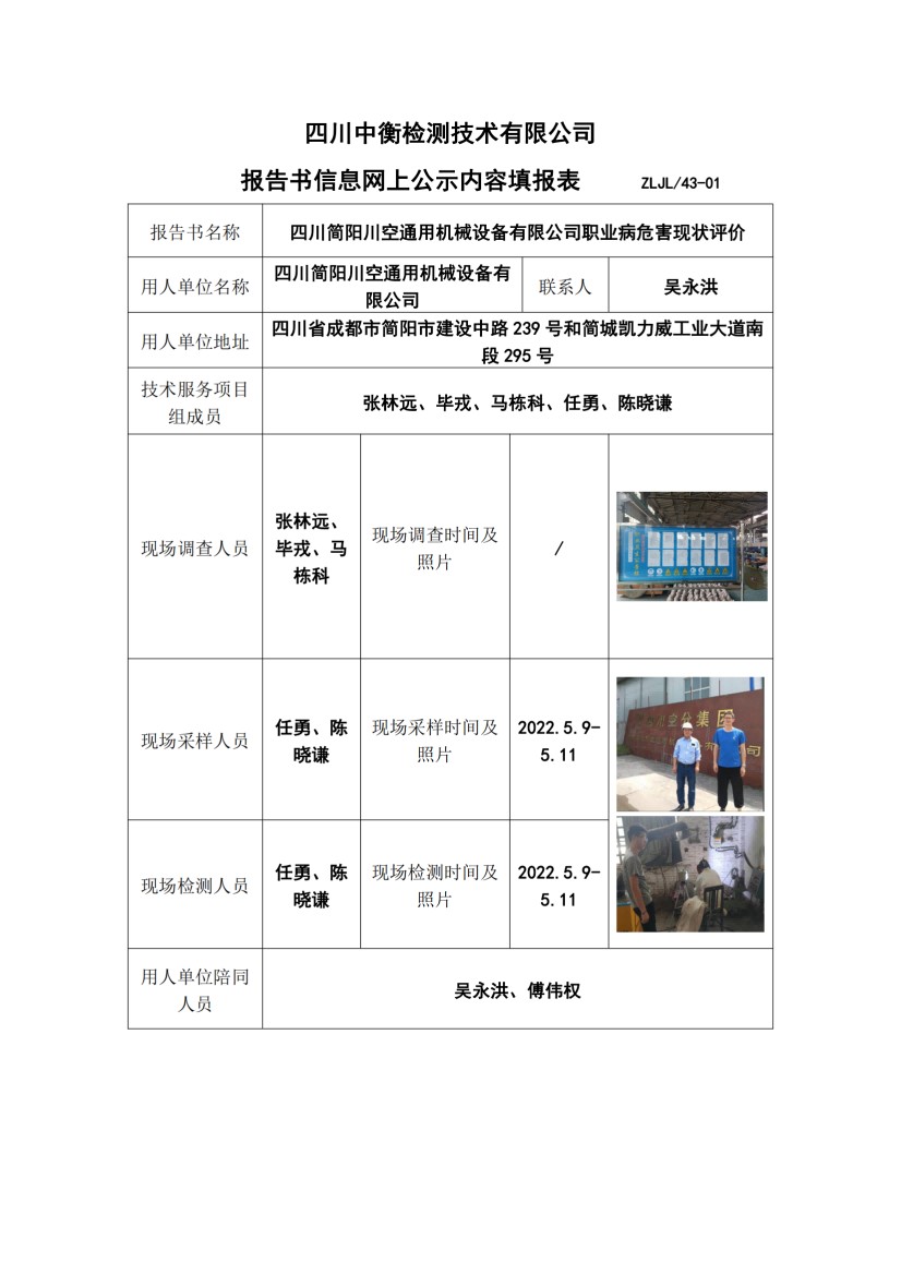 四川簡陽川空通用機械設(shè)備有限公司職業(yè)病危害現(xiàn)狀評價