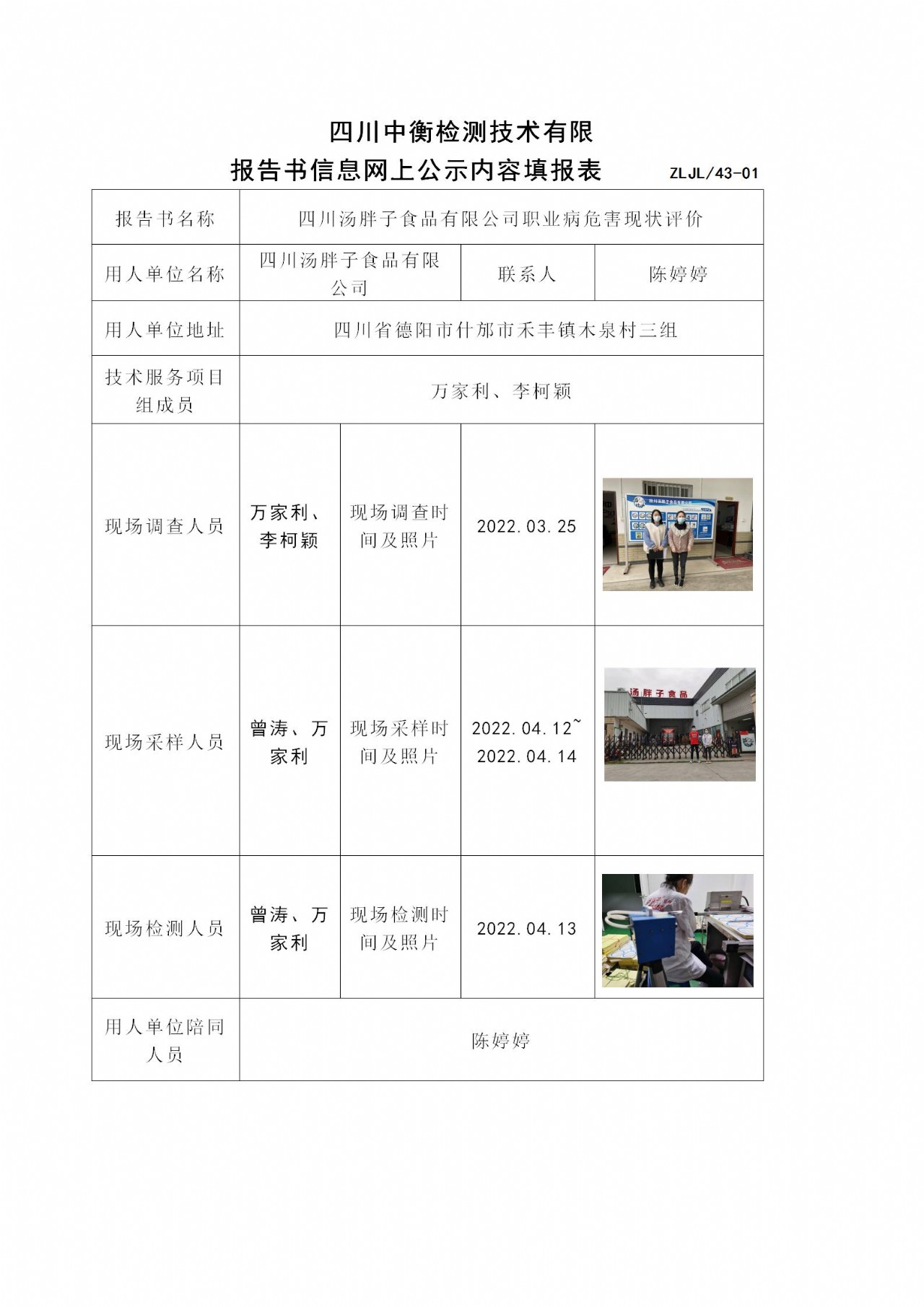 四川湯胖子食品有限公司職業(yè)病危害現(xiàn)狀評價