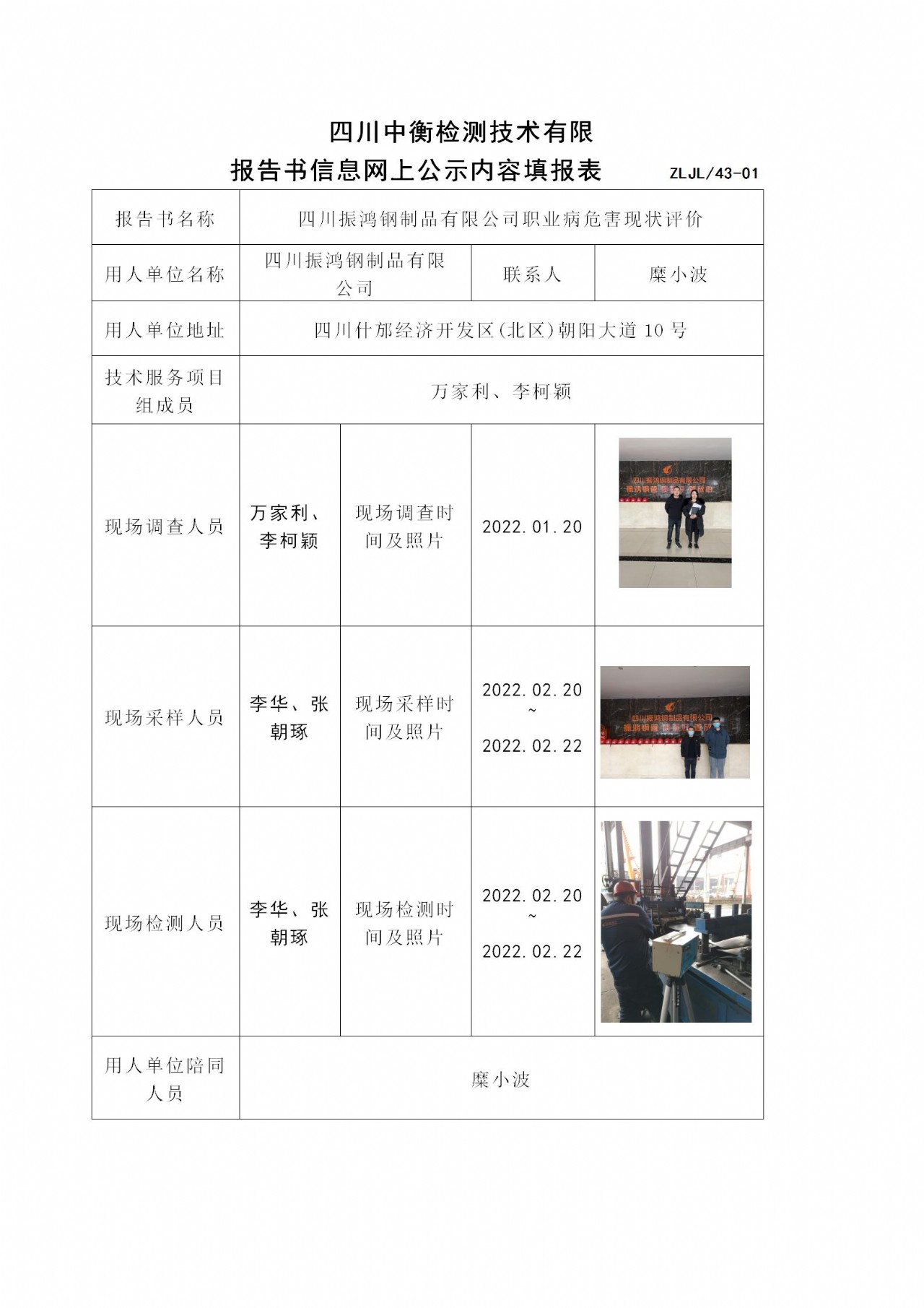 四川振鴻鋼制品有限公司職業(yè)病危害現(xiàn)狀評(píng)價(jià)