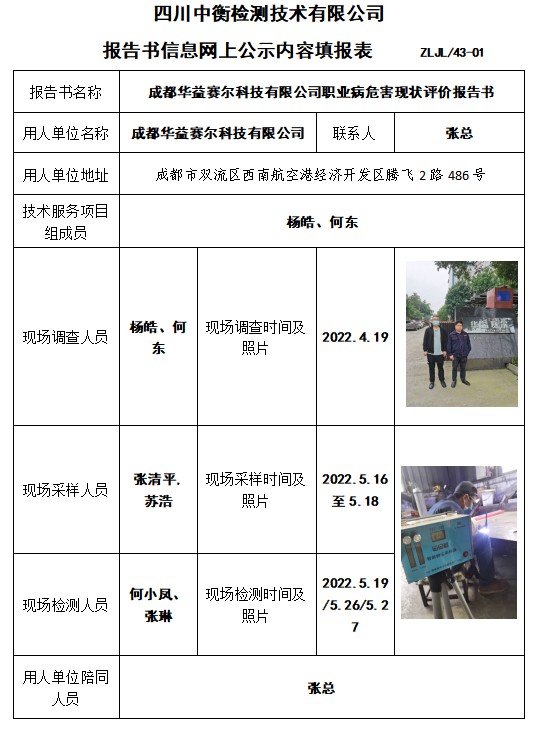 成都華益賽爾科技有限公司職業(yè)病危害現(xiàn)狀評價