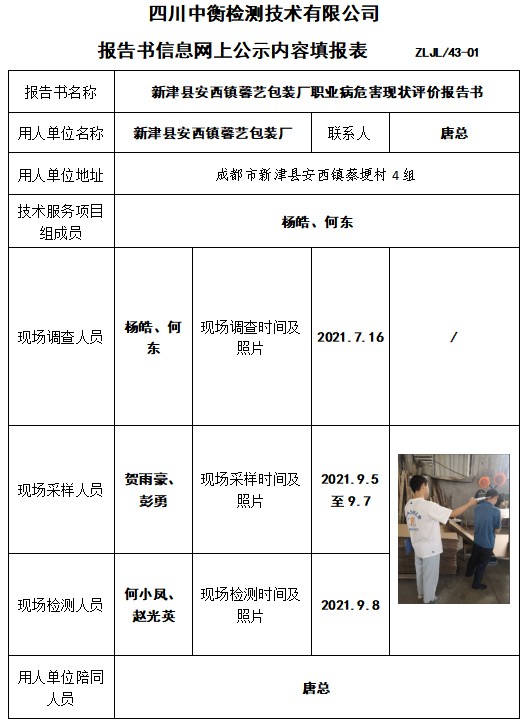 新津縣安西鎮(zhèn)馨藝包裝廠職業(yè)病危害現(xiàn)狀評(píng)價(jià)
