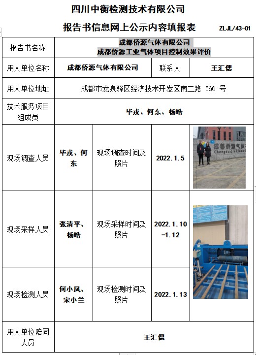 成都僑源氣體有限公司 成都僑源工業(yè)氣體項(xiàng)目控制效果評(píng)價(jià)