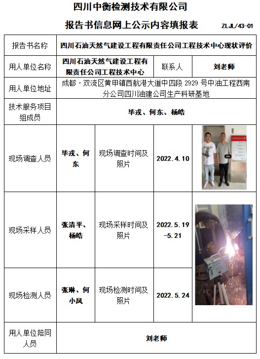 四川石油天然氣建設工程有限責任公司工程技術中心現(xiàn)狀評價