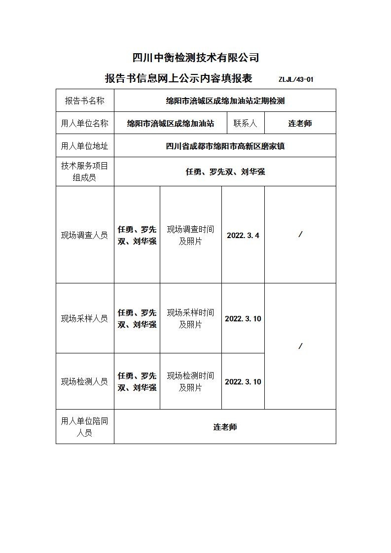 綿陽(yáng)市涪城區(qū)成綿加油站職業(yè)病危害定期檢測(cè)