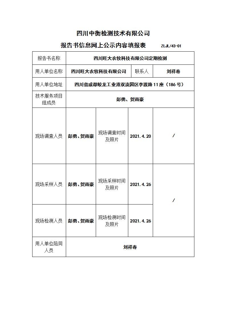 四川旺大農(nóng)牧科技有限公司職業(yè)病危害定期檢測