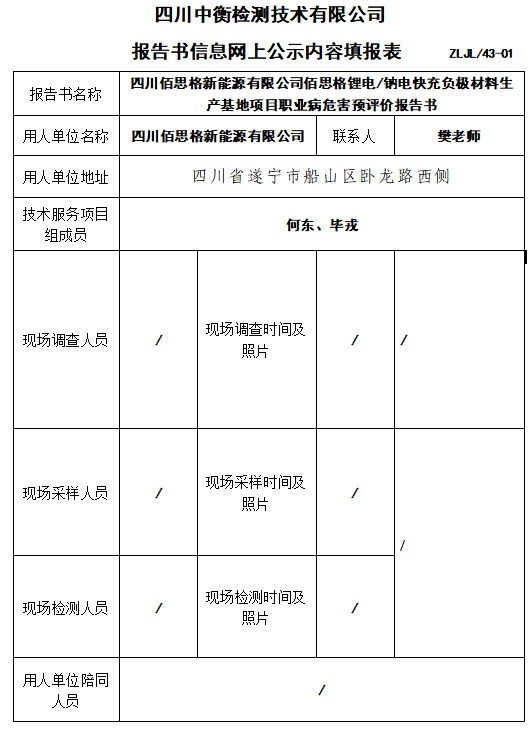 四川佰思格新能源有限公司佰思格鋰電/鈉電快充負(fù)極材料生產(chǎn)基地項(xiàng)目職業(yè)病危害預(yù)評(píng)價(jià)