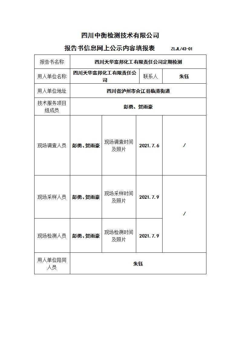 四川天華富邦化工有限責(zé)任公司職業(yè)病危害定期檢測