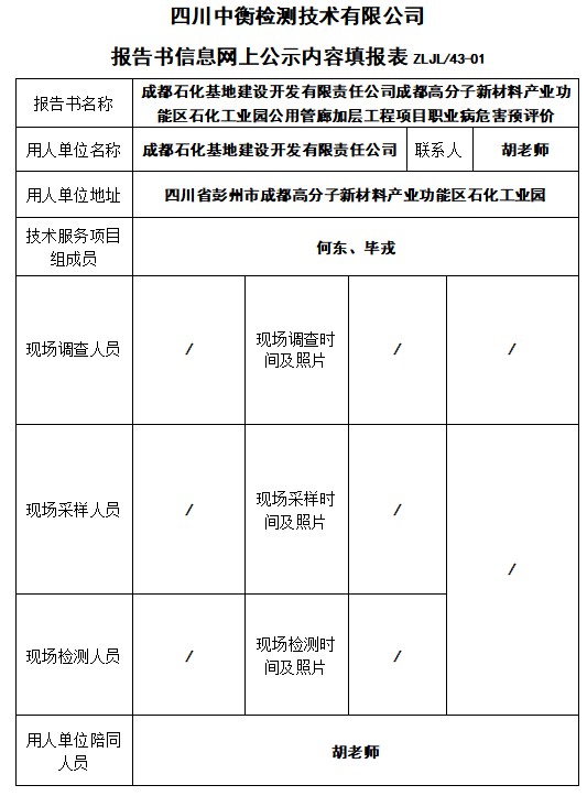 成都石化基地建設(shè)開(kāi)發(fā)有限責(zé)任公司成都高分子新材料產(chǎn)業(yè)功能區(qū)石化工業(yè)園公用管廊加層工程項(xiàng)目職業(yè)病危害預(yù)評(píng)價(jià)