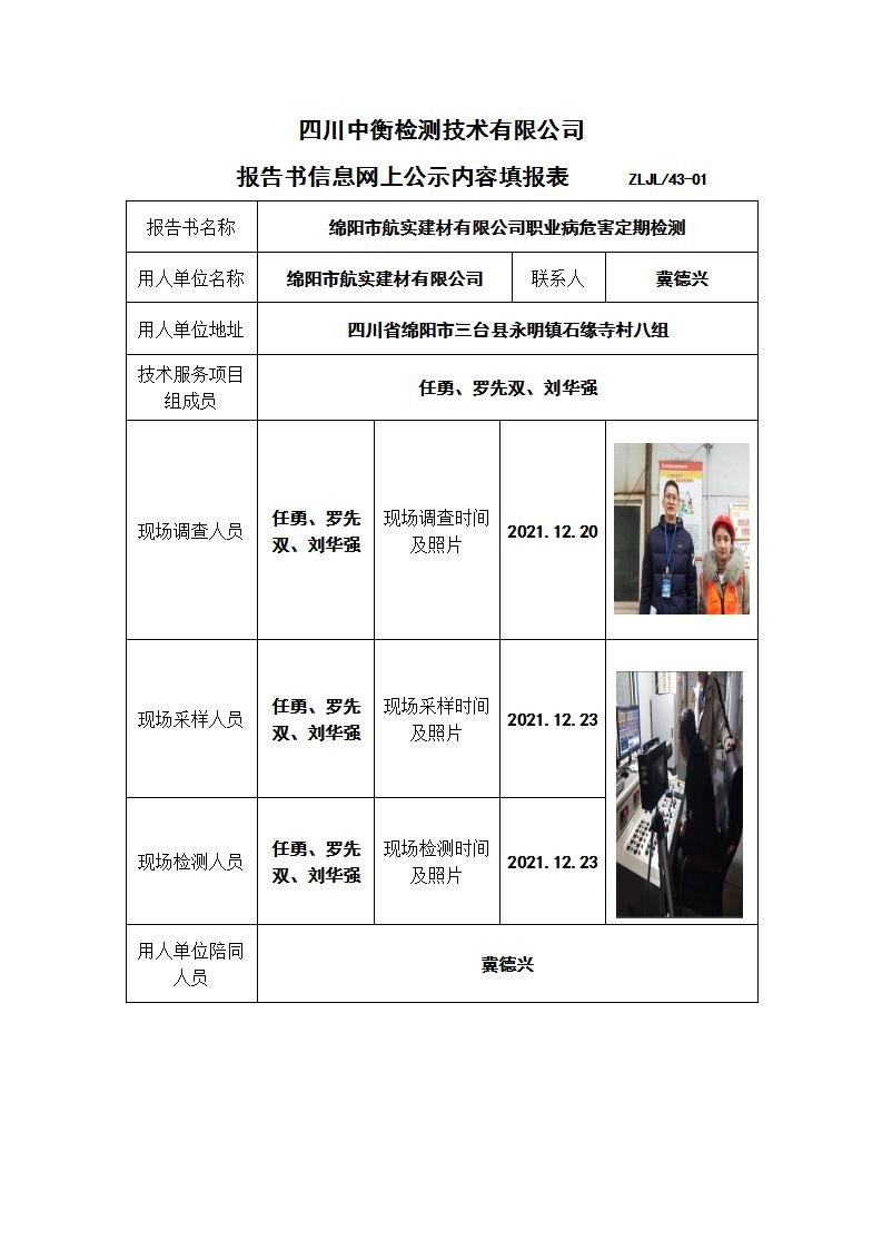 綿陽市航實(shí)建材有限公司職業(yè)病危害定期檢測(cè)