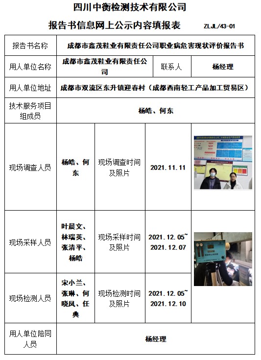 成都市鑫茂鞋業(yè)有限責(zé)任公司職業(yè)病危害現(xiàn)狀評(píng)價(jià)