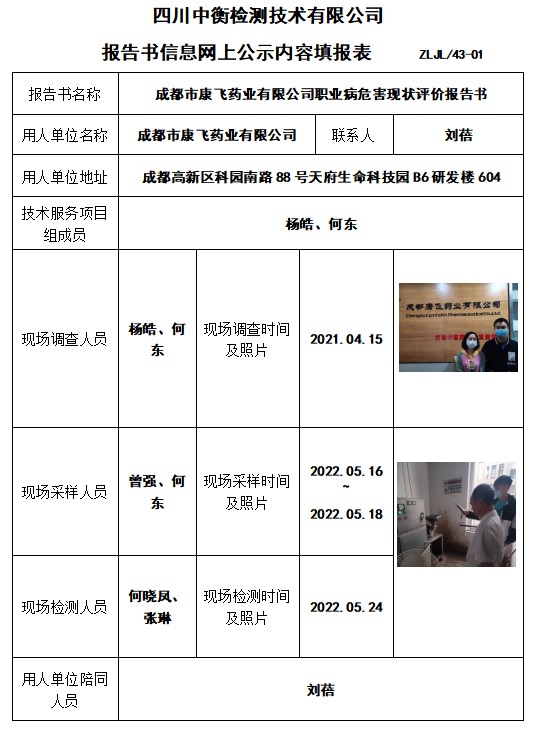 成都市康飛藥業(yè)有限公司職業(yè)病危害現(xiàn)狀評(píng)價(jià)