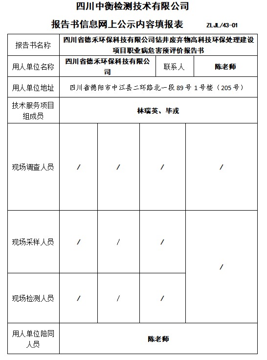 四川省德禾環(huán)??萍加邢薰俱@井廢棄物高科技環(huán)保處理建設(shè)項(xiàng)目職業(yè)病危害預(yù)評價(jià)