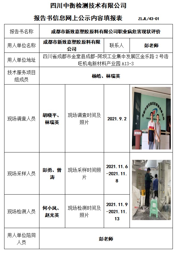 成都市新致嘉塑膠原料有限公司職業(yè)病危害現(xiàn)狀評價