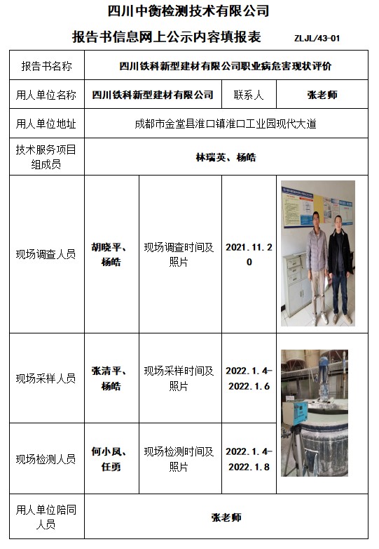 四川鐵科新型建材有限公司職業(yè)病危害現(xiàn)狀評價