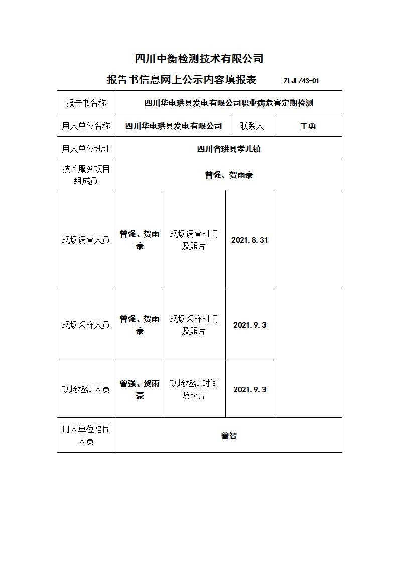 四川華電珙縣發(fā)電有限公司職業(yè)病危害定期檢測