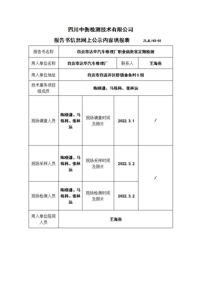 自貢市達華汽車修理廠職業(yè)病危害定期檢測