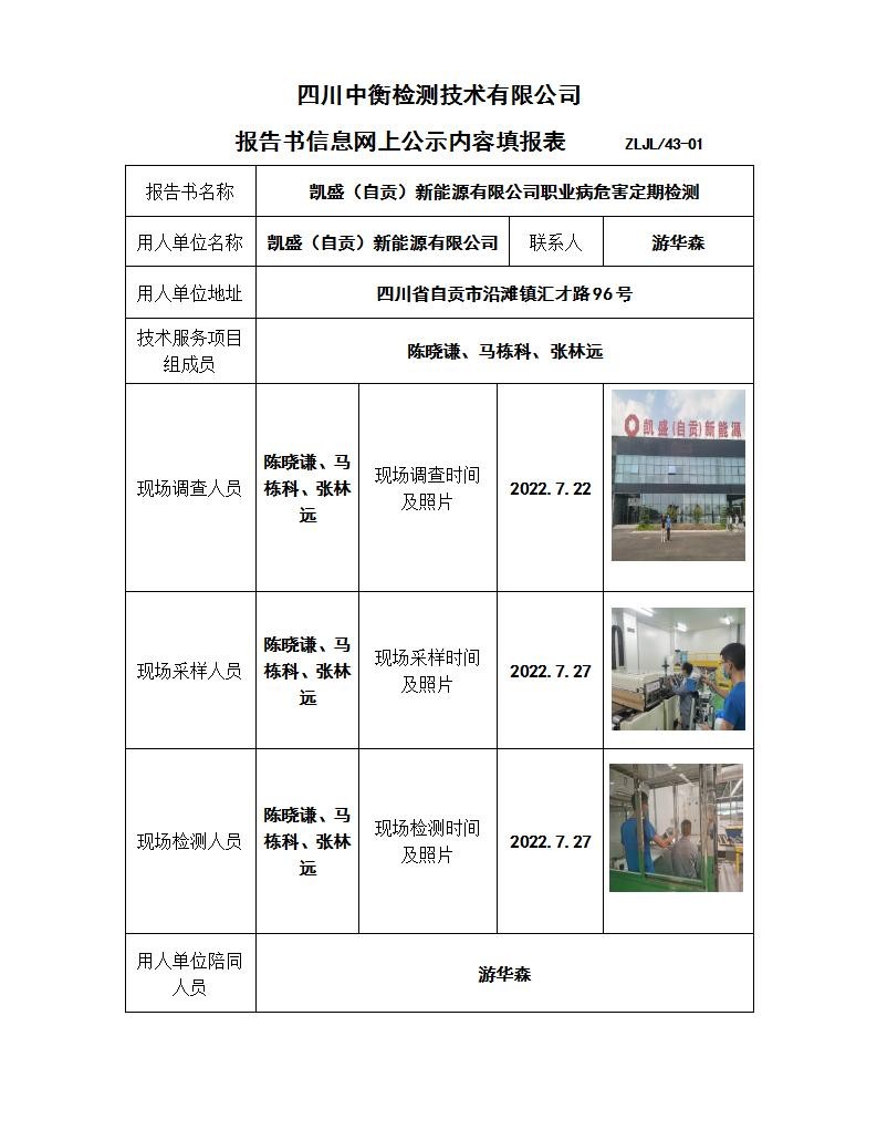 凱盛(自貢)新能源有限公司職業(yè)病危害定期檢測