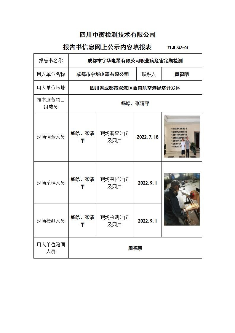 成都市宇華電器有限公司職業(yè)病危害定期檢測(cè)