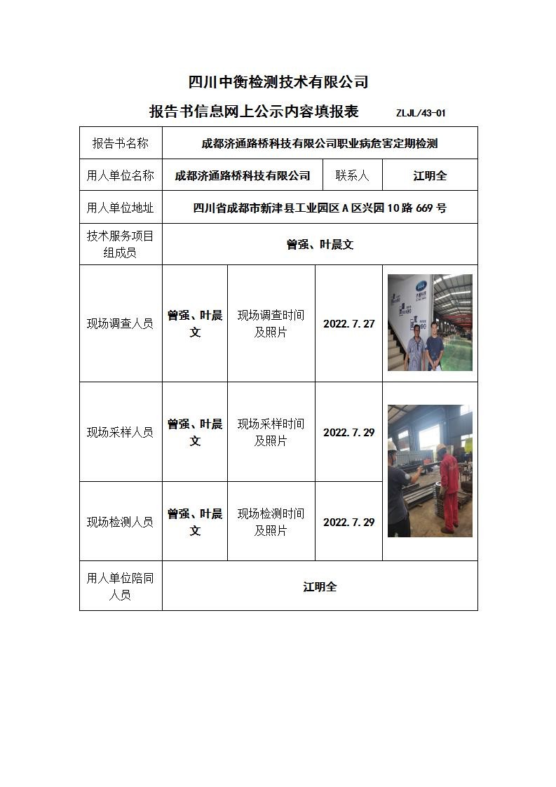 成都濟(jì)通路橋科技有限公司職業(yè)病危害定期檢測(cè)