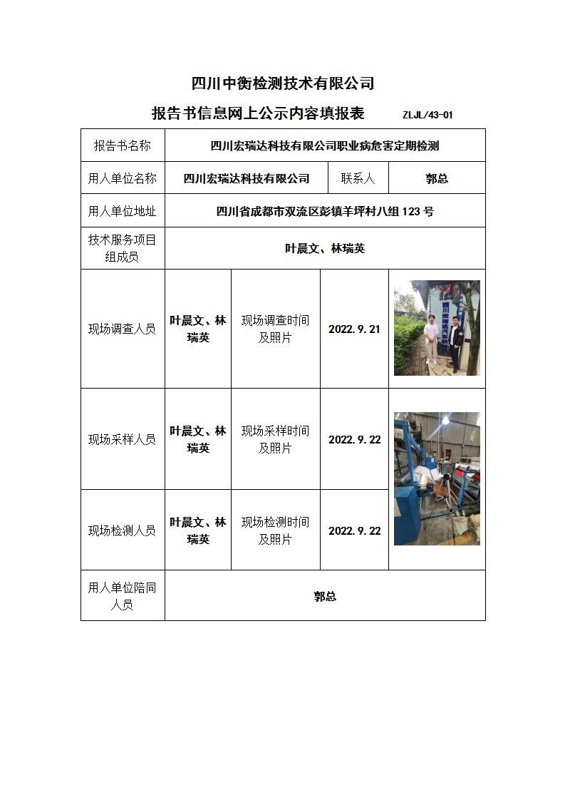 四川宏瑞達(dá)科技有限公司職業(yè)病危害定期檢測(cè)