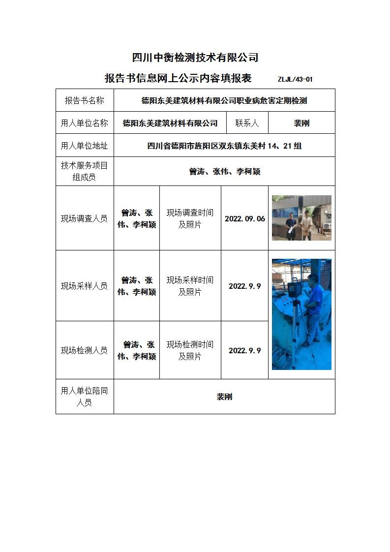 德陽東美建筑材料有限公司職業(yè)病危害定期檢測