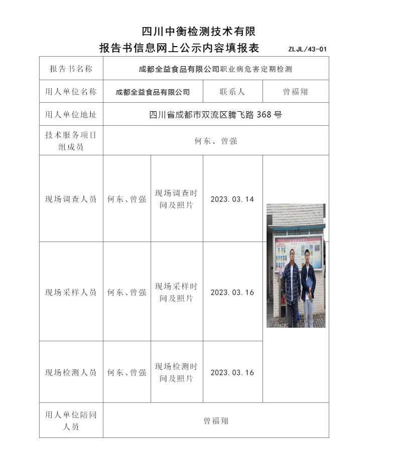 成都全益食品有限公司職業(yè)病危害定期檢測