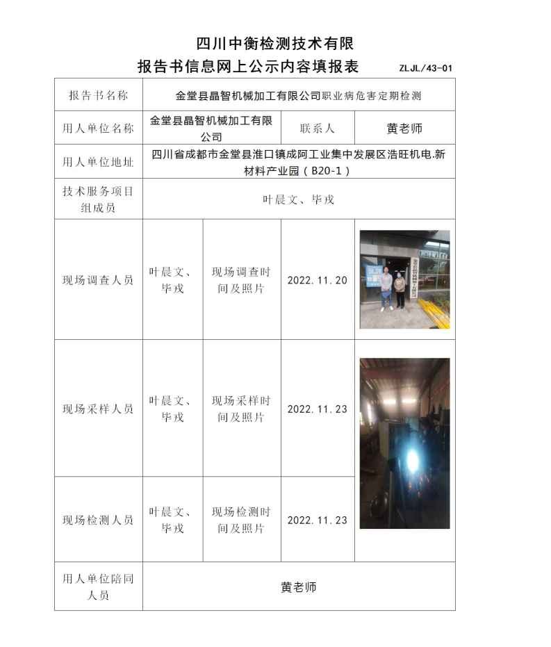金堂縣晶智機(jī)械加工有限公司職業(yè)病危害定期檢測