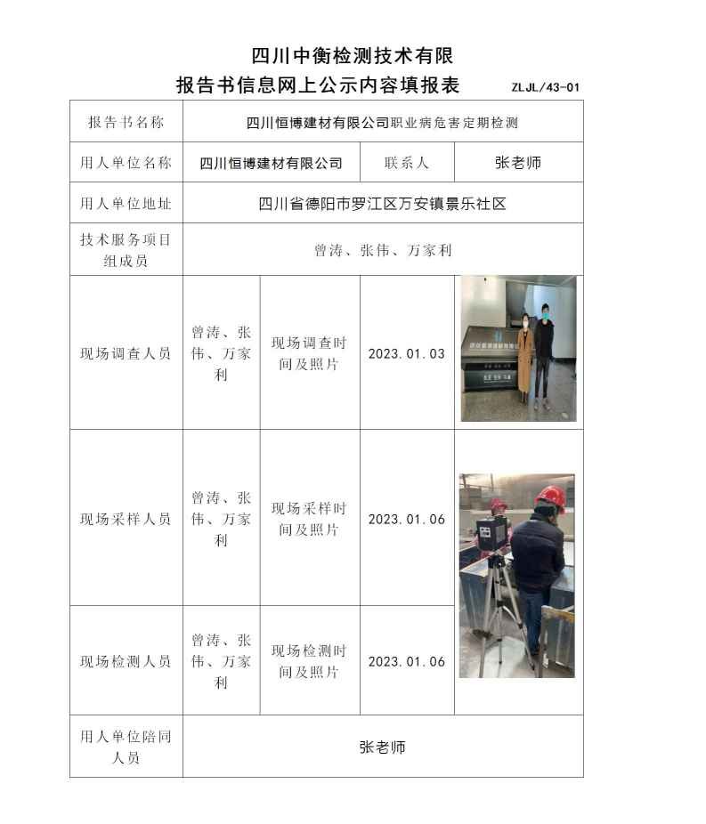 四川恒博建材有限公司職業(yè)病危害定期檢測