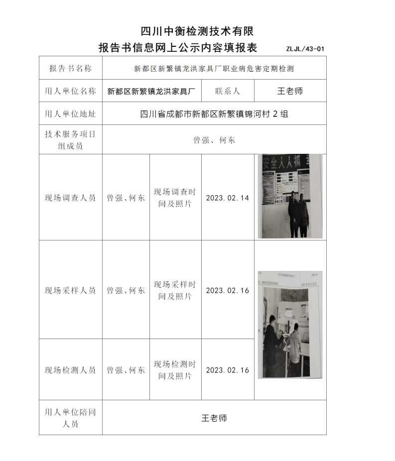 新都區(qū)新繁鎮(zhèn)龍洪家具廠職業(yè)病危害定期檢測