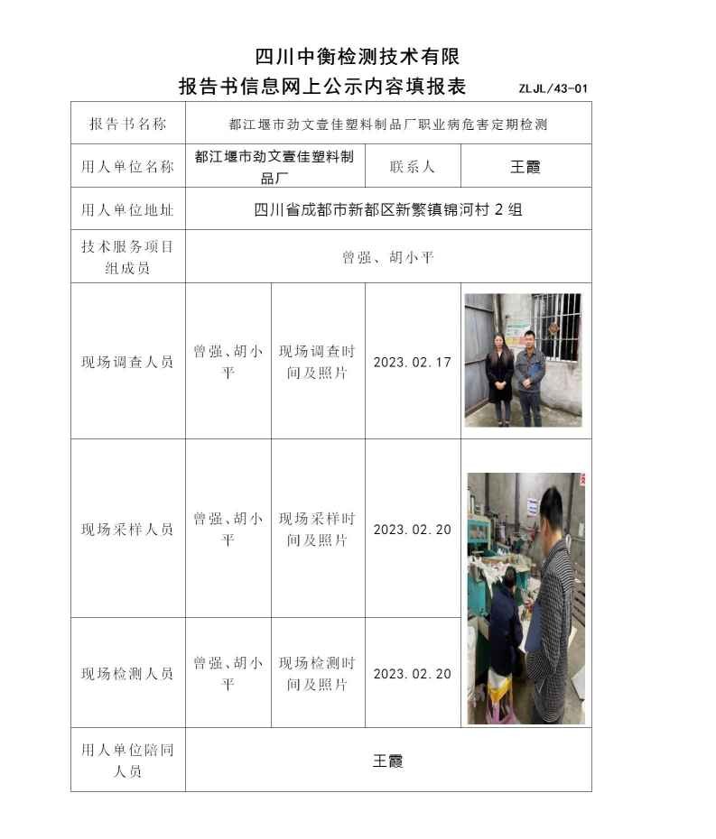 都江堰市勁文壹佳塑料制品廠職業(yè)病危害定期檢測(cè)