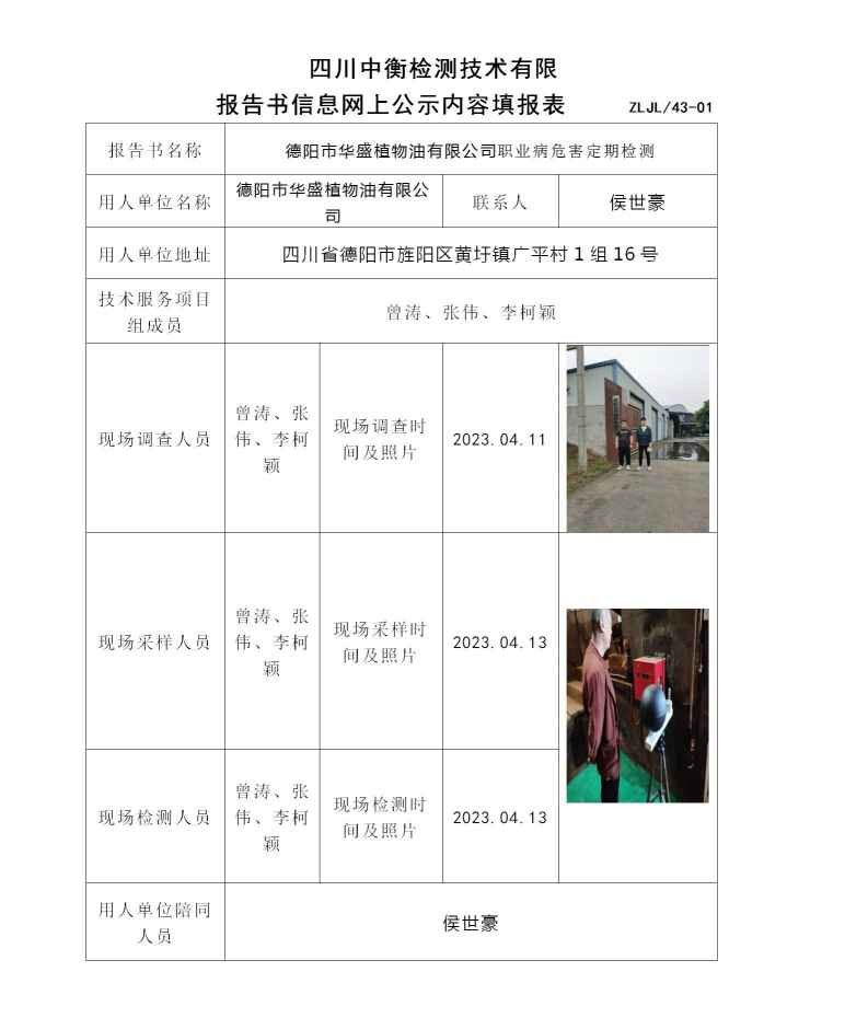德陽市華盛植物油有限公司職業(yè)病危害定期檢測
