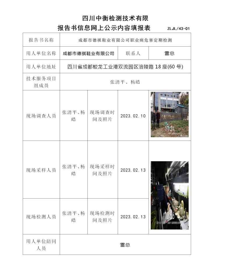 成都市德祺鞋業(yè)有限公司職業(yè)病危害定期檢測(cè)