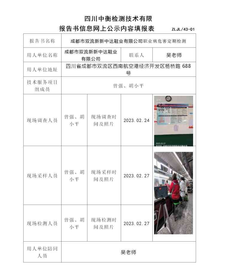 成都市雙流新新中達鞋業(yè)有限公司職業(yè)病危害定期檢測